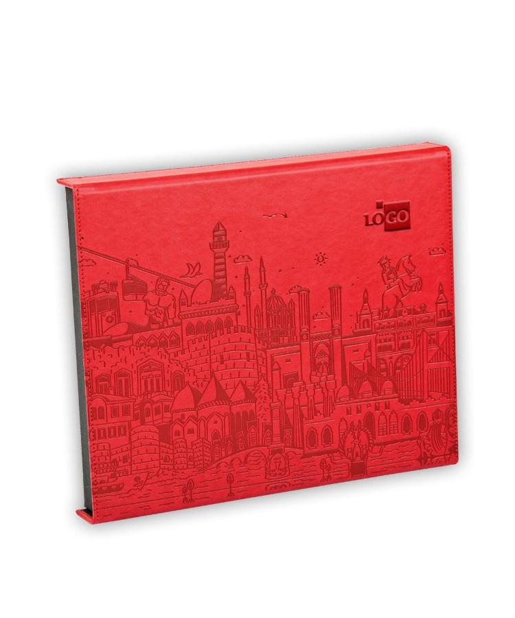 Deri yüzeyli ajanda, defter, usb bellek gibi ürünlere klişeli olarak sıcak baskı makinesinde bu baskı çeşidi uygulanmaktadır.